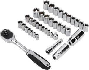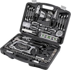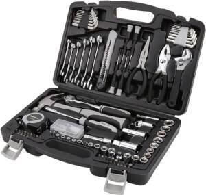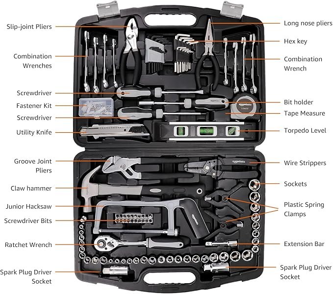 Ensemble d’outils à main de 173 pièces pour les réparations ménagères de base et les projets quotidiens ; comprend 8 clés mixtes, une clé à cliquet de 3/8″, 22 clés hexagonales, une pince à joint coulissant de 6″, une pince à bec long de 6″, et plus encore (faites défiler vers le bas pour voir la liste complète)